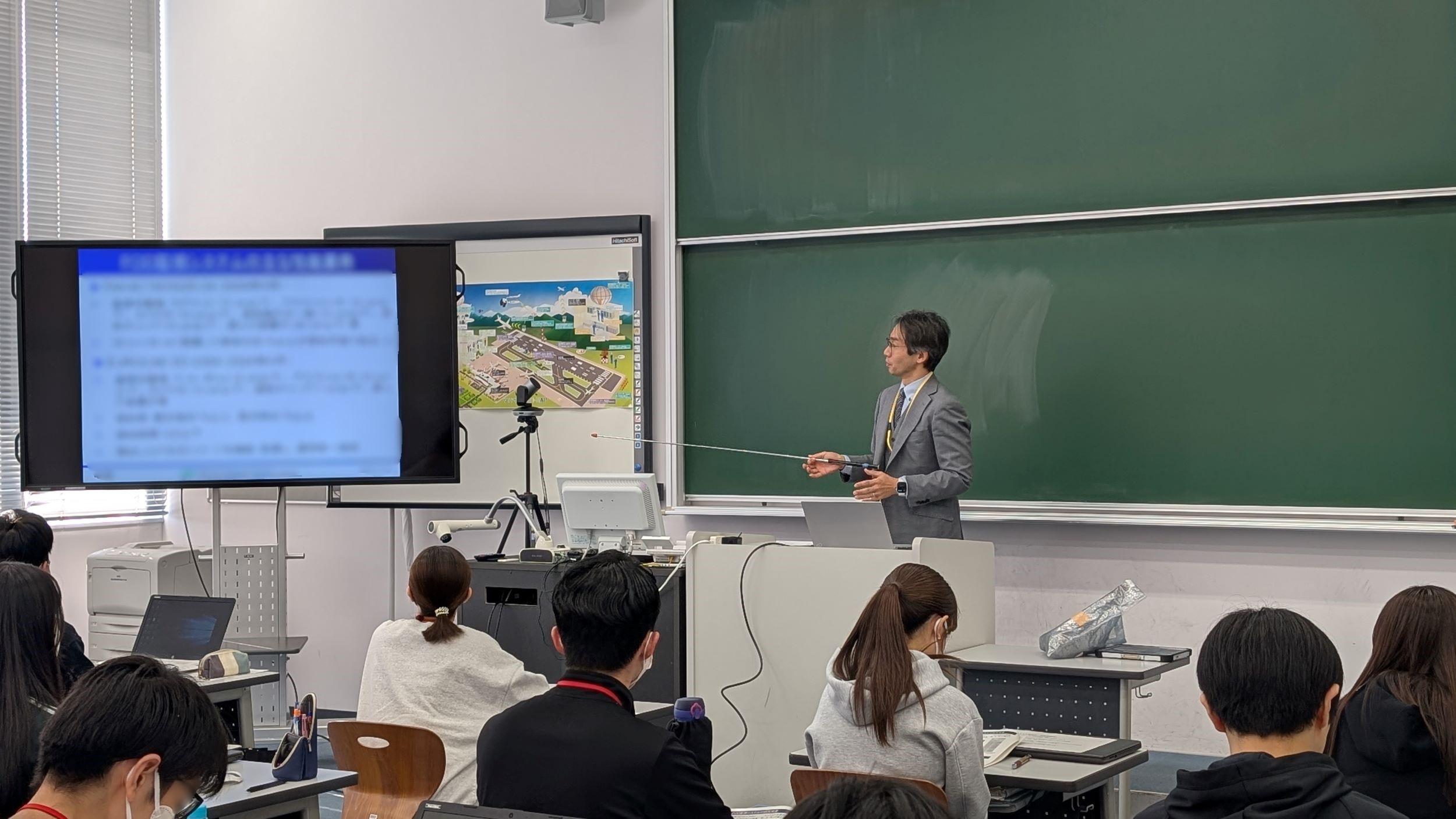 会場には航空情報科、航空電子科2年生、総勢約50名が参加され、各講義後に設けられた質疑応答ではGBASの原理や仕組みなど多くの質問があり技術開発等への関心がうかがえました。皆様との交流を通じて、貴重なご意見を得ることができ、今後の研究活動の参考となりました。